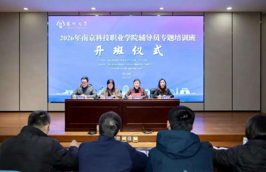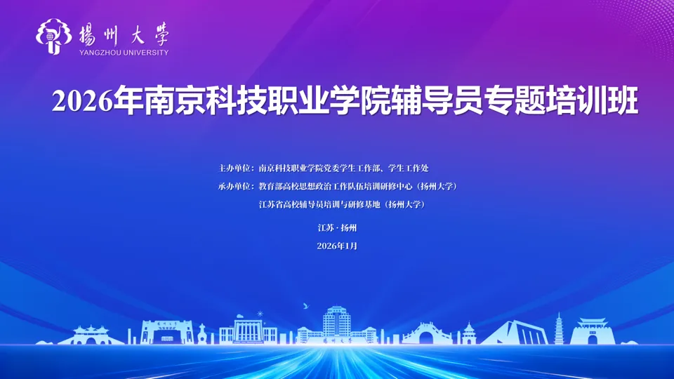 1月19日至1月20日,由教育部高校思想政治工作队伍培训研修中心(扬州大学)(以下简称“培训研修中心”)、江苏省高校辅导员培训与研修基地(扬州大学)承办的南京科技职业学院辅导员专题培训班在我校举办。