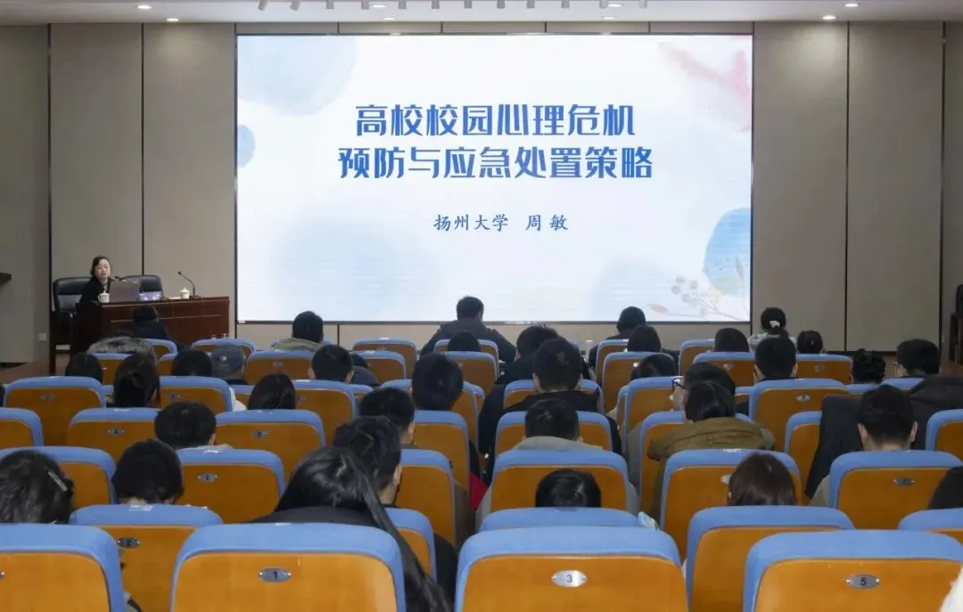 1月20日下午,扬州大学电气与能源动力工程学院党委副书周敏作“校园心理危机的预防与应急处置策略”专题报告,通过真实案例,介绍了心理危机的多线索识别方式、动态评估要点与干预策略,并对心理危机的概念特性及时代特征作了简要阐述。