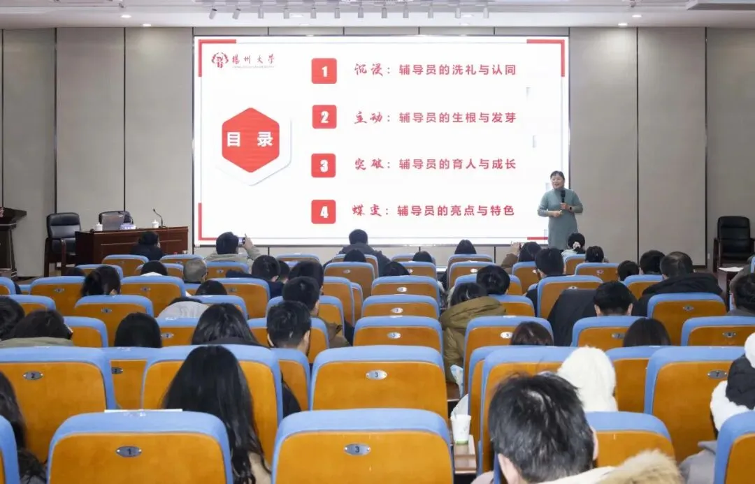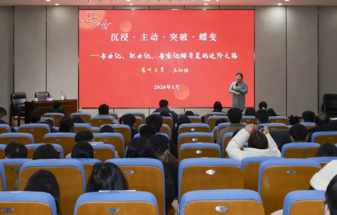 1月20日下午,扬州大学信息与人工智能学院(工业软件学院)党委副书记、全国最美高校辅导员提名奖获得者、2023年江苏省“最美高校辅导员”左红梅教授作“沉浸、主动、突破、蝶变——专业化、职业化、专家化辅导员的进阶之路”专题报告。系统阐释了辅导员从“事务型”向“专家型”的蝶变路径。她指出新时代辅导员应以“多元闭环”育人模式为牵引,在持续的专业精进中实现育人成效与自我能力的双重提升。