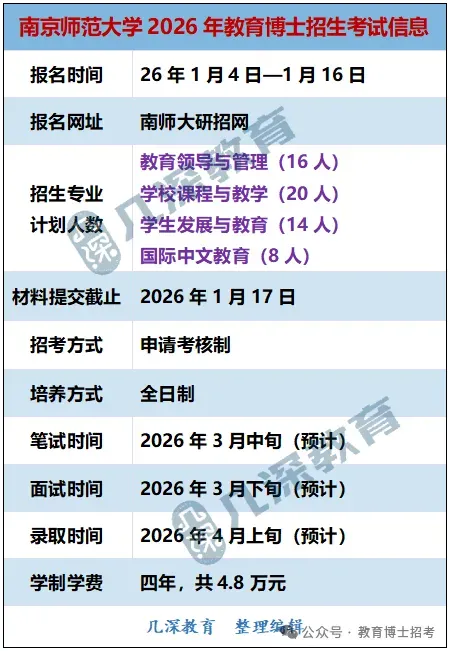 南京师范大学2026年博士研究生招生考试(普通招考)将于2026年3月进行。现将具体工作安排通知如下: