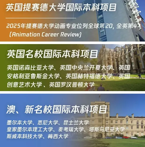 作为南京传媒学院直属的归口负责国际教育的教学单位,南传国际学院深耕艺术留学领域,是中国教育国际交流协会会员单位,并联合多所海外顶尖传媒艺术名校,开展国际本科/预科项目,致力于为学生提供全方位、高品质的国际化教育服务,现面向全国招收有意向出国留学就读本科的学生开设国际本科留学培训课程。