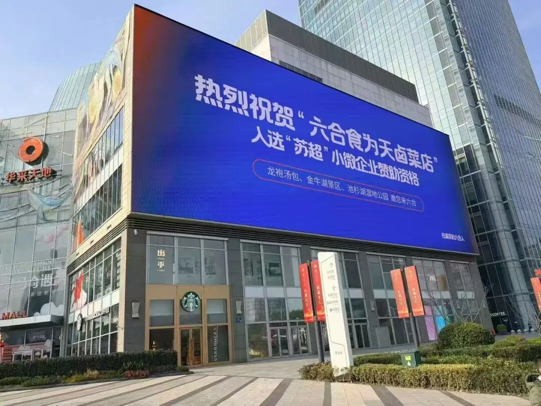 在南京一商场户外大屏投放广告表示: