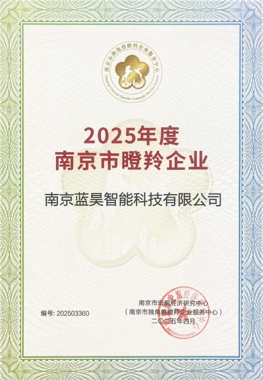 2025年4月,南京蓝昊荣获“2025年度南京市瞪羚企业”,公司将继续做好新质生产力和产业科技创新的示范工作,为助力区域高质量发展贡献更多力量。