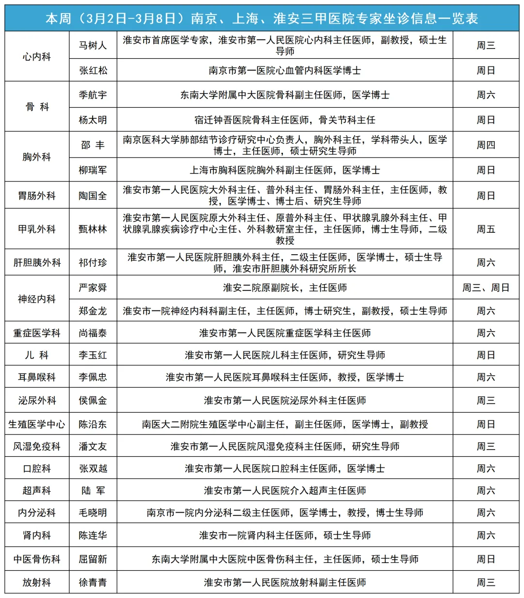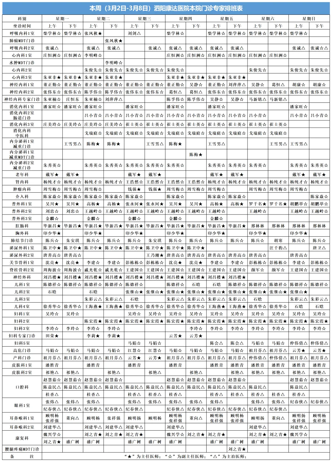 为了方便市民就医,康达医院官方微信发布本周(3月2日-3月8日)省市级专家坐诊信息,以便市民根据自身情况自主安排到院就诊时间,希望给市民的就诊带来便利。