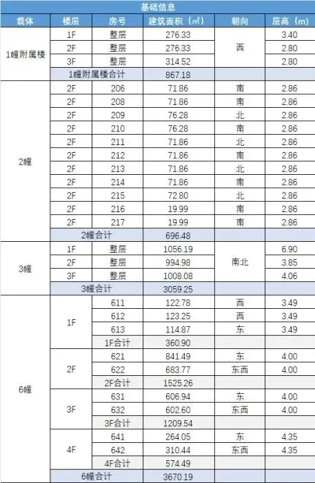 •6幢,共四层,可按层出租:360㎡—1525㎡不等