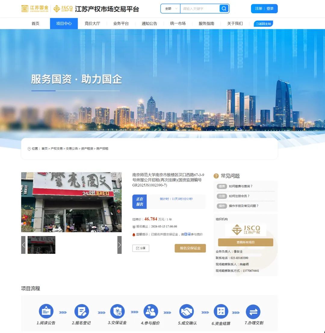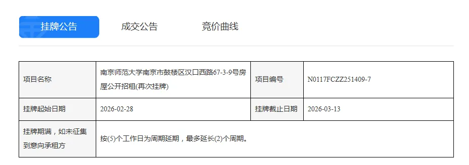 >南京师范大学南京市鼓楼区汉口西路67-3-9号房屋公开招租(再次挂牌)