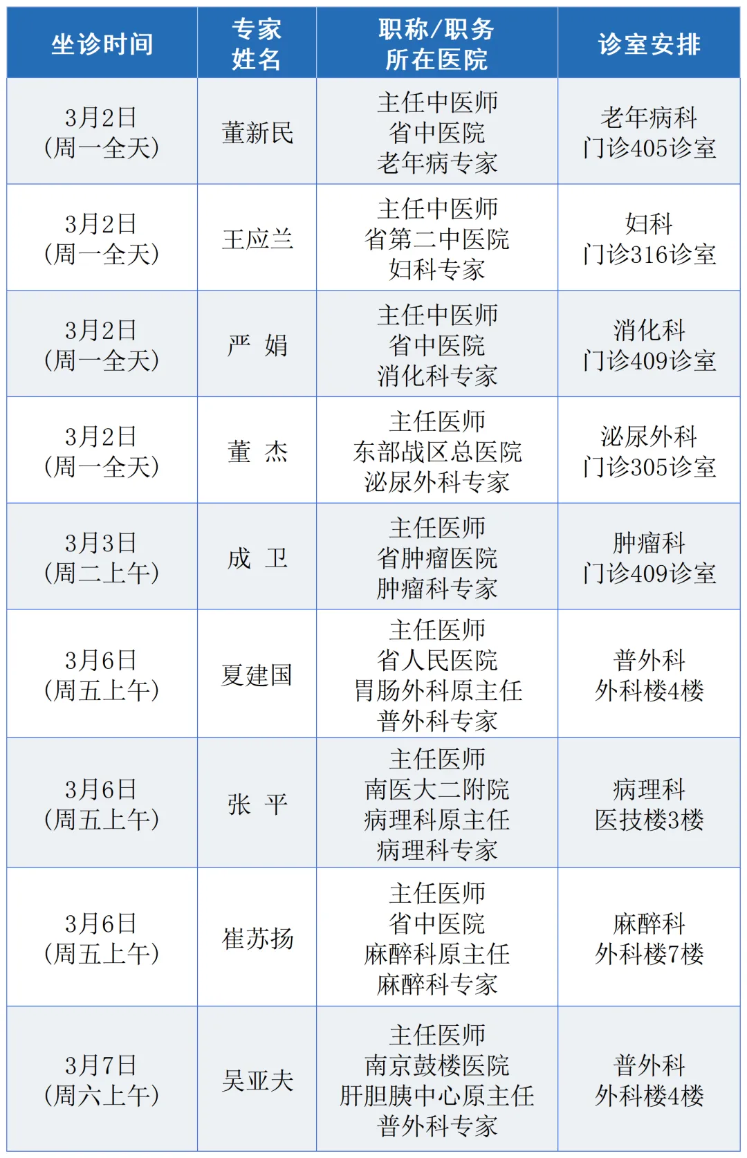 来院时间:周一全天