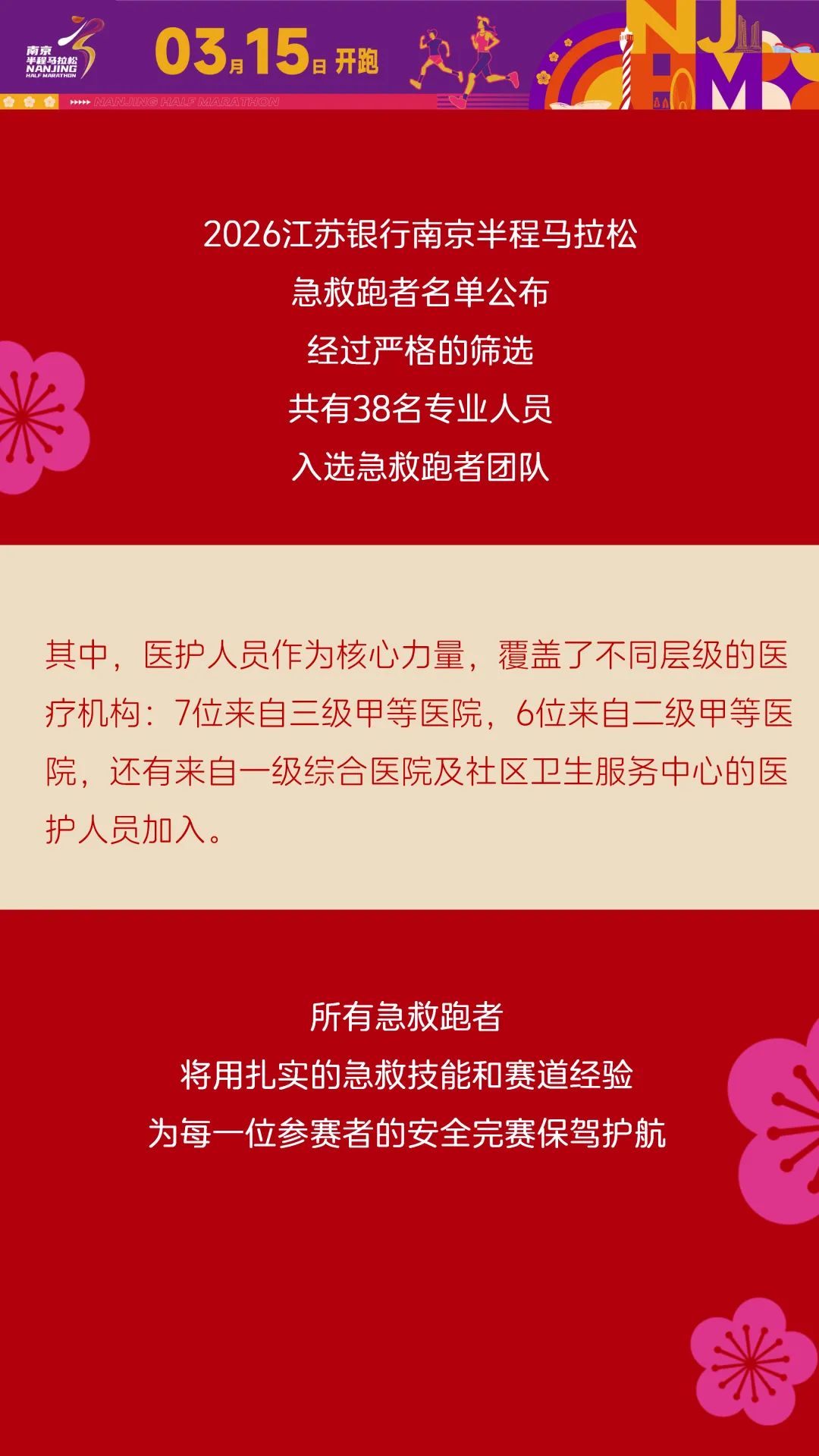赛讯 | 2026江苏银行南京半程马拉松官方急救跑者公布