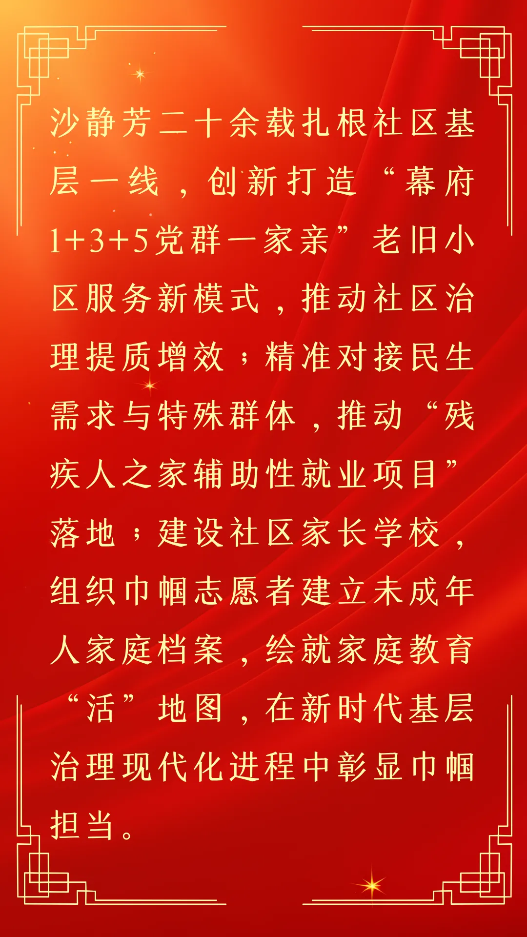沙静芳 南京市栖霞区燕子矶街道幕府山庄社区党委书记、居委会主任