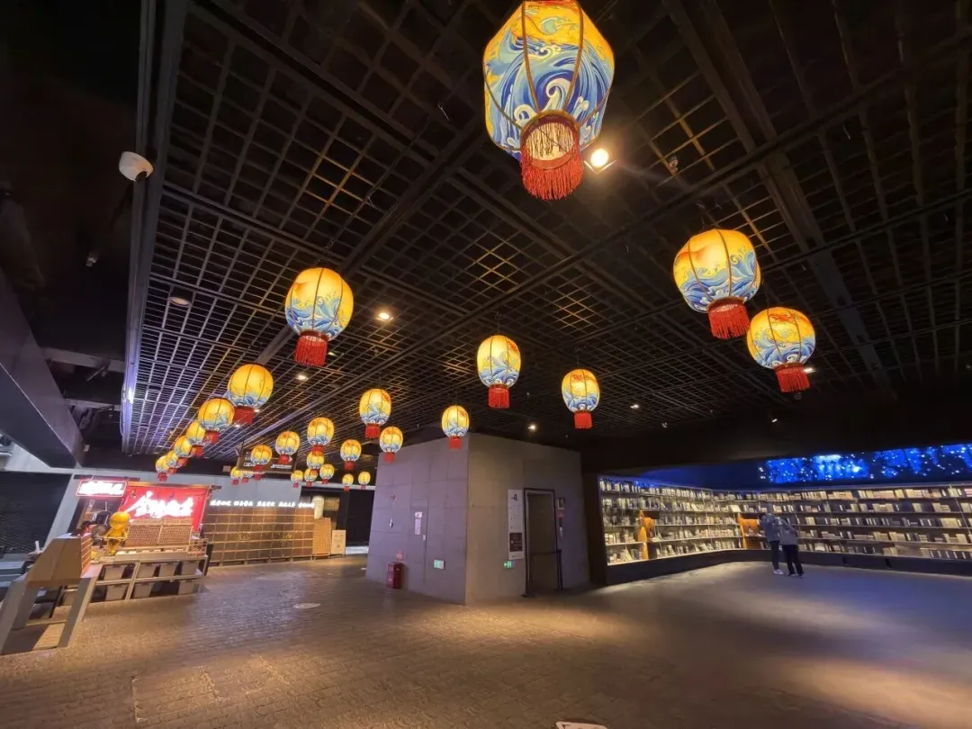 全长150多米的龙鱼灯笼阵,将传统灯笼与龙鱼元素结合,分别装饰金陵佳话、魁星堂展厅,为新春佳节增添浓厚氛围,打造沉浸式通行体验。