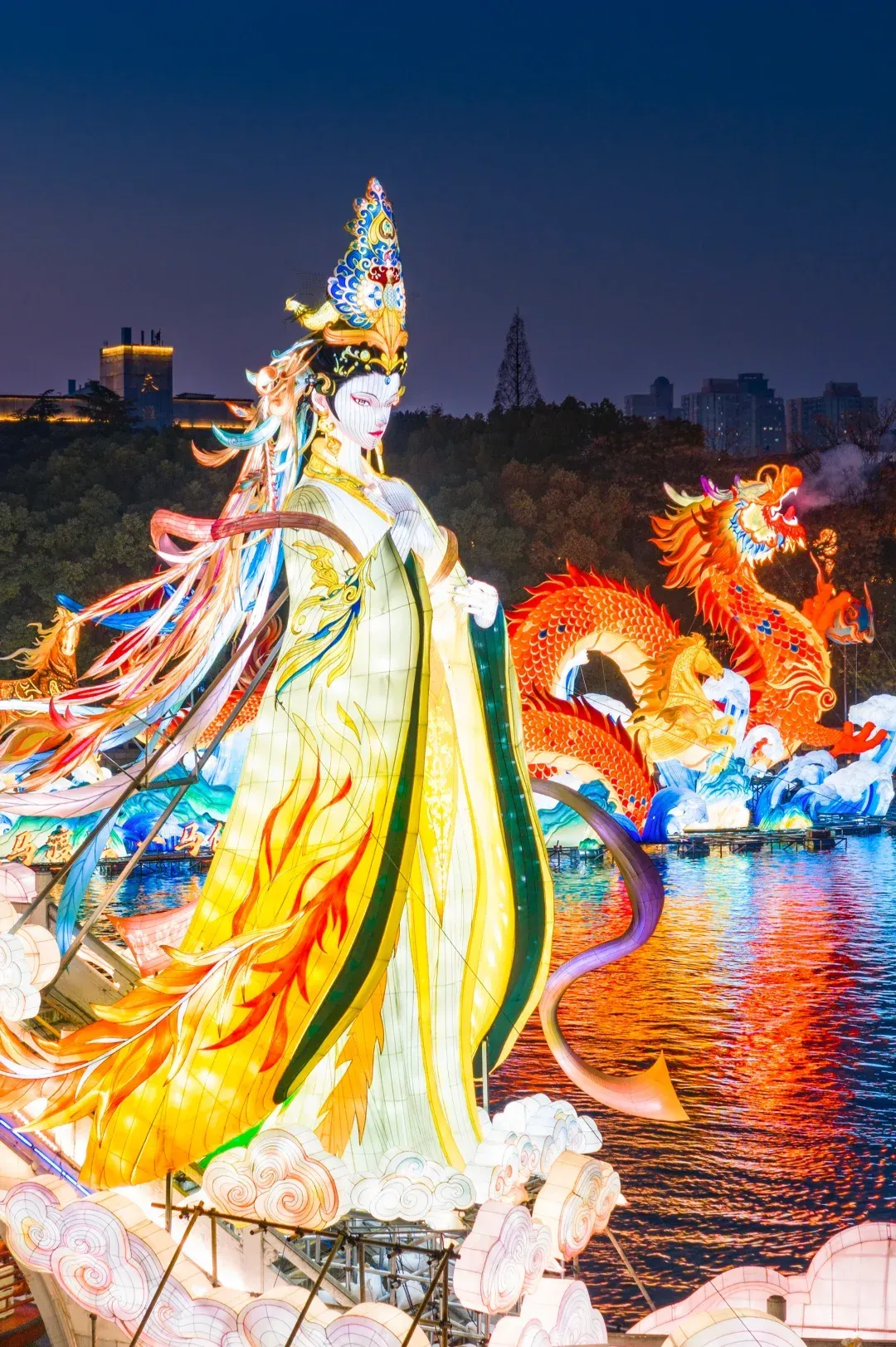 40米长的神龙和骏马搭配着祥云,打造热闹喜庆的年节氛围,传递新春美好祝福,呼应灯会40周年与马年双重主题。