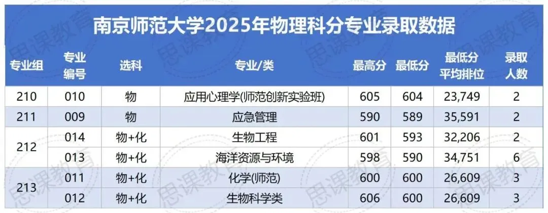 南京师范大学2025年物理类分专业录取数据