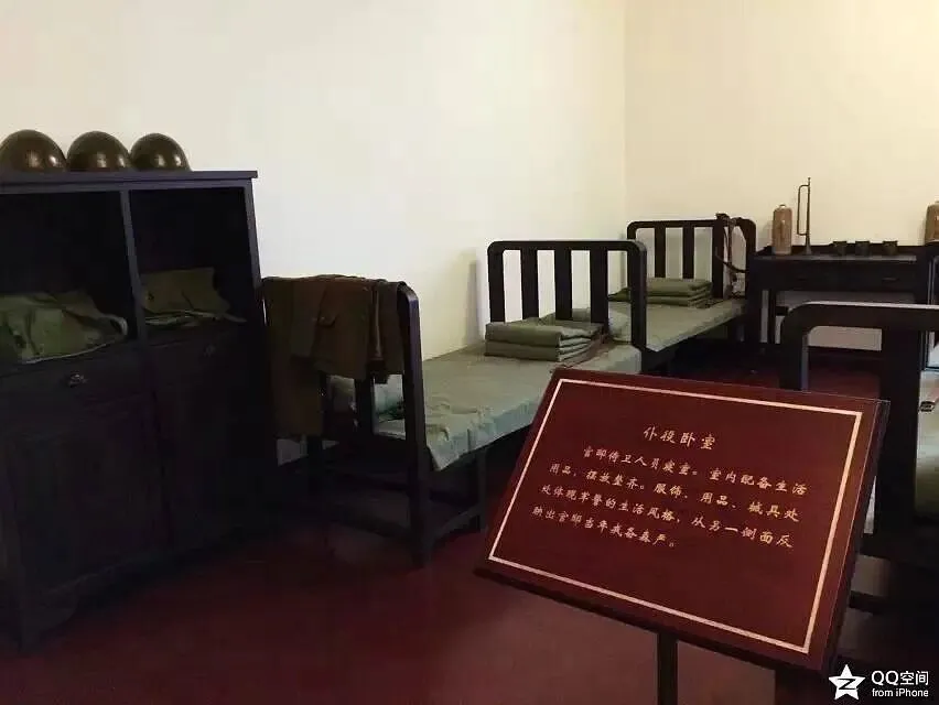 仆役卧室。配备简单生活用品,摆放整齐。服饰、用品、械具处处体现军警的生活风格,从另一侧面反映出官邸当年戒备森严。