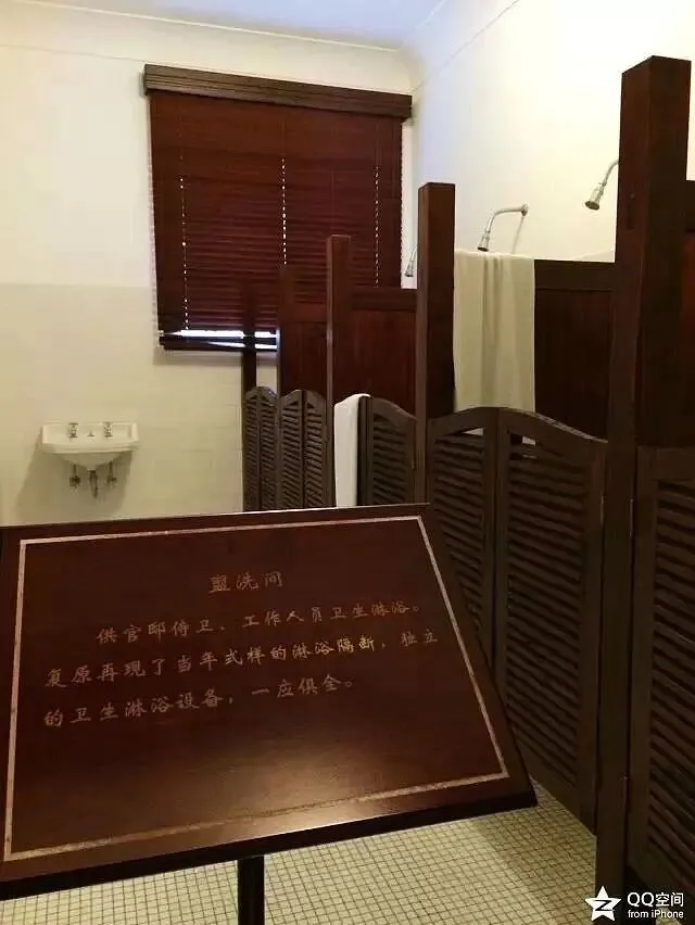 供侍卫、工作人员卫生淋浴的盥洗间。再现了当年式样的淋浴隔断,独立的卫生设备一应俱全。