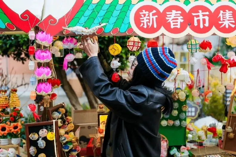 非遗糖画、绒花、宋锦带你触摸传统文化脉络,糖葫芦、麻糍、烧烤等美食飘香四溢,更有文创文玩、穿戴甲、宠物文创等好物琳琅满目。