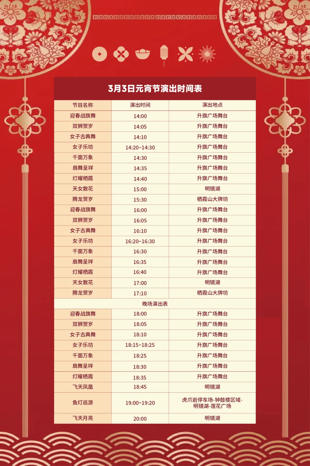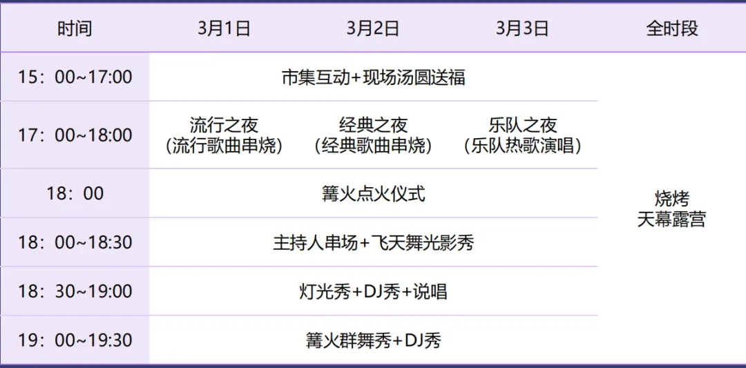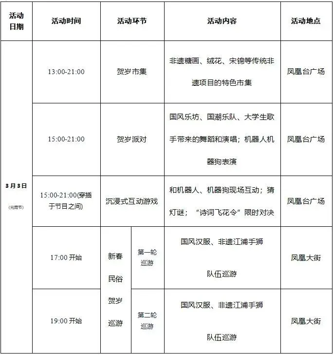 3 月 3 日当天还有 NPC 国风巡游(15:00、16:00)、巷戏连台(18:00 起两场)、皮影戏等演出活动。
