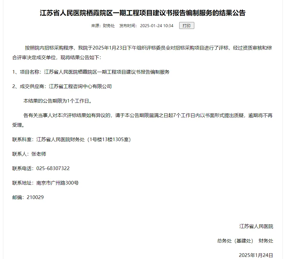 25年1月25日,江苏省人民医院启动国家医学中心项目启动报告编制。据招标公告介绍:栖霞院区建设项目总建设规模49万平方米,其中:一期工程建设规模23.13万平方米,后期工程建设规模25.87万平方米。值得一提的是,这个规模与此前报道披露的35万平方米,又扩容了1.4倍!