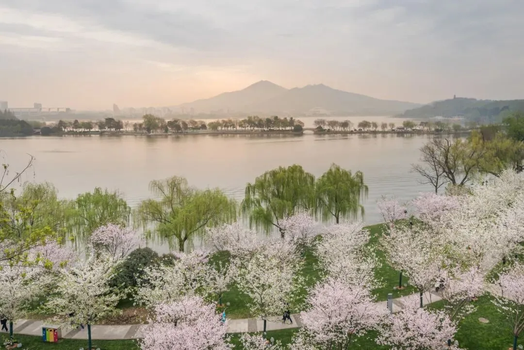 赏完樱花,不妨去玄武湖走走。春水初生,杨柳依依,租条小船泛舟湖上,看紫金山倒映在碧波中,惬意得很。