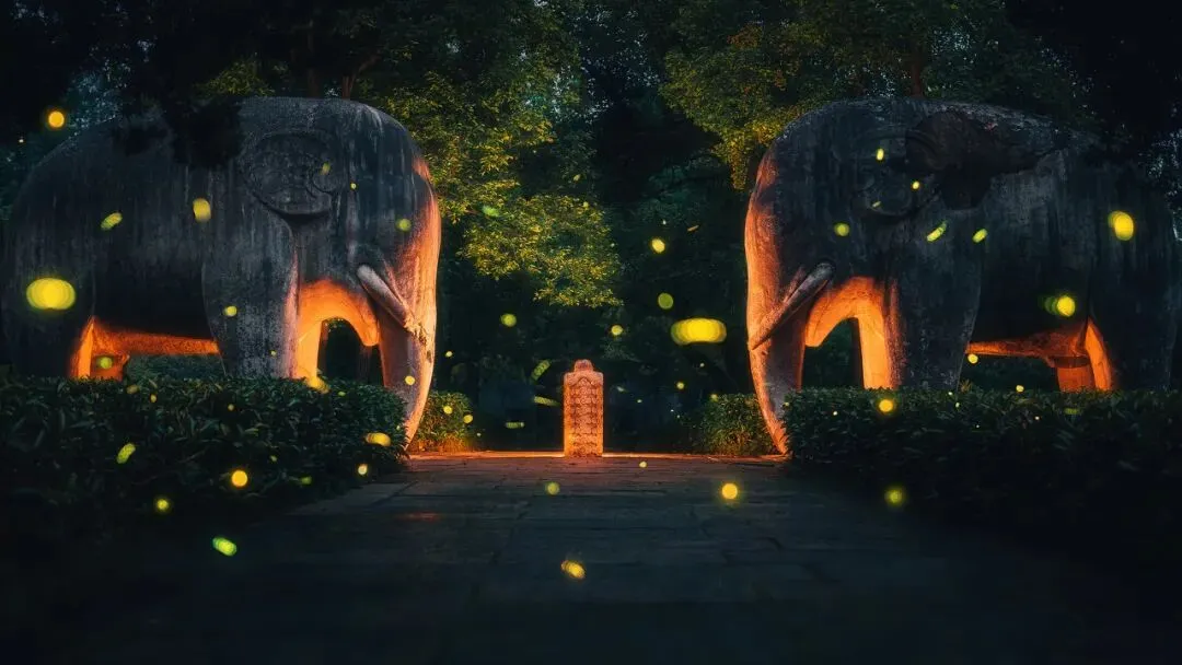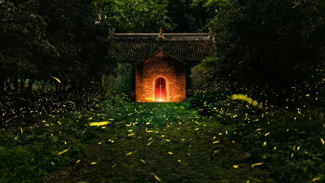 七月的灵谷寺,是夏日限定的浪漫之地。每到夜晚,成千上万的萤火虫在林间飞舞,星星点点,如梦似幻。沿着无梁殿旁的小路走进去,仿佛闯进了童话世界。