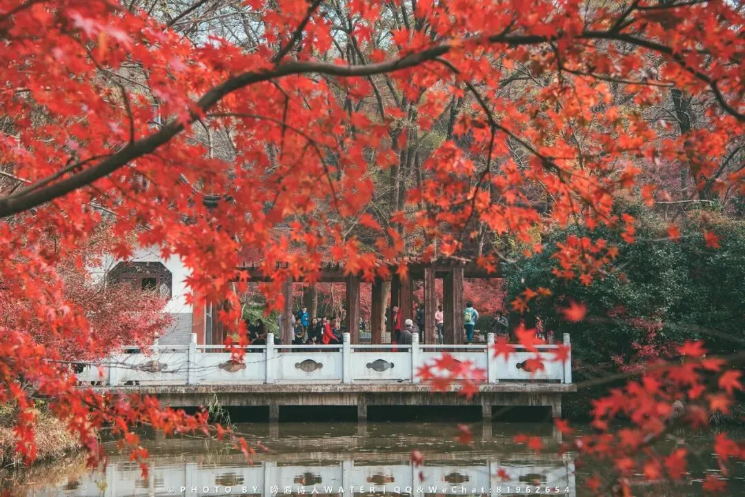 十月底到十一月中,栖霞山的红叶进入最佳观赏期。漫山遍野的枫树、槭树,红得如火如荼。登上山顶远眺,长江如练,红叶似海,难怪古人说“春牛首,秋栖霞”。