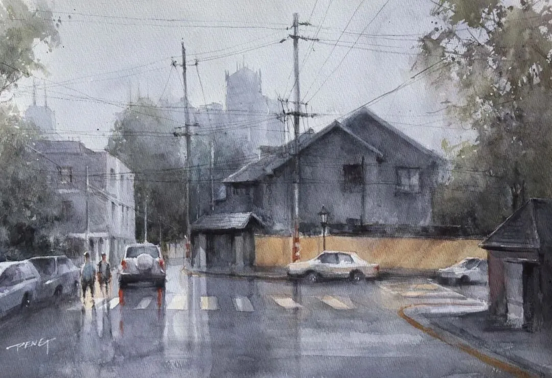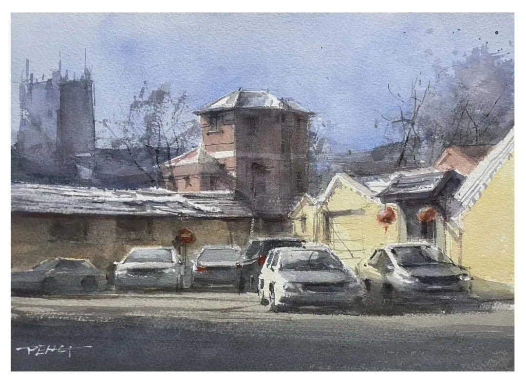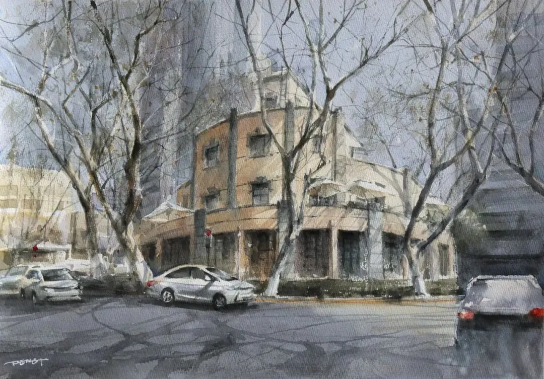 《西康路-牯岭路路口》纸本水彩 51X36cm 2025