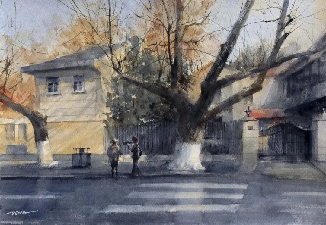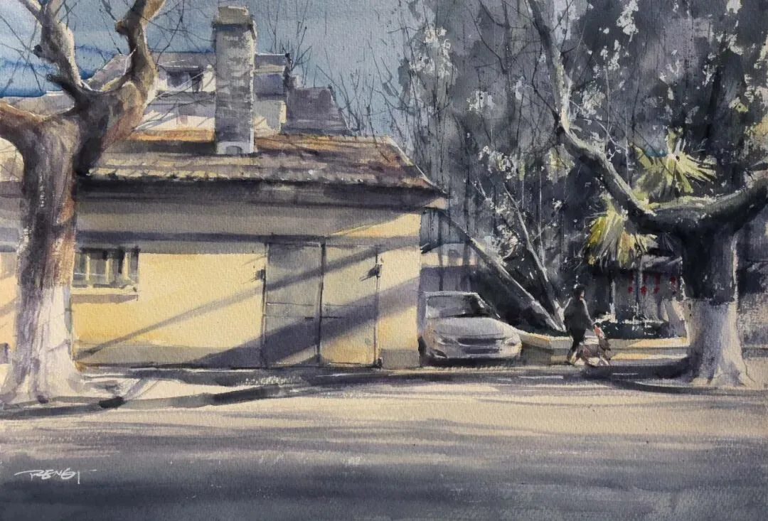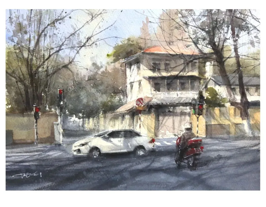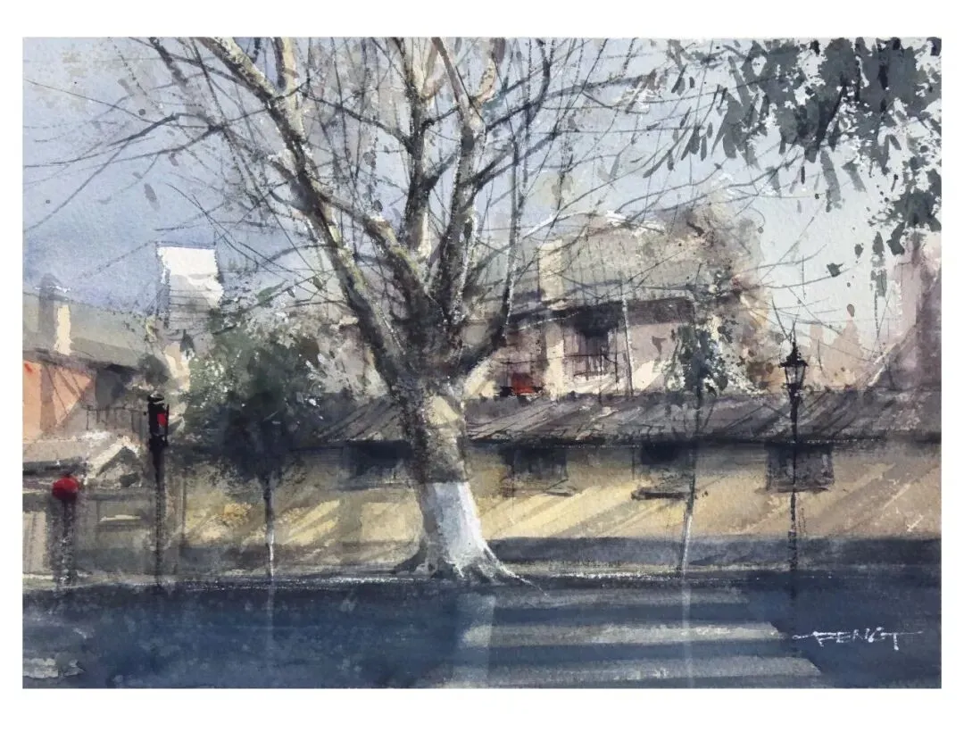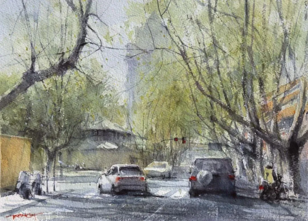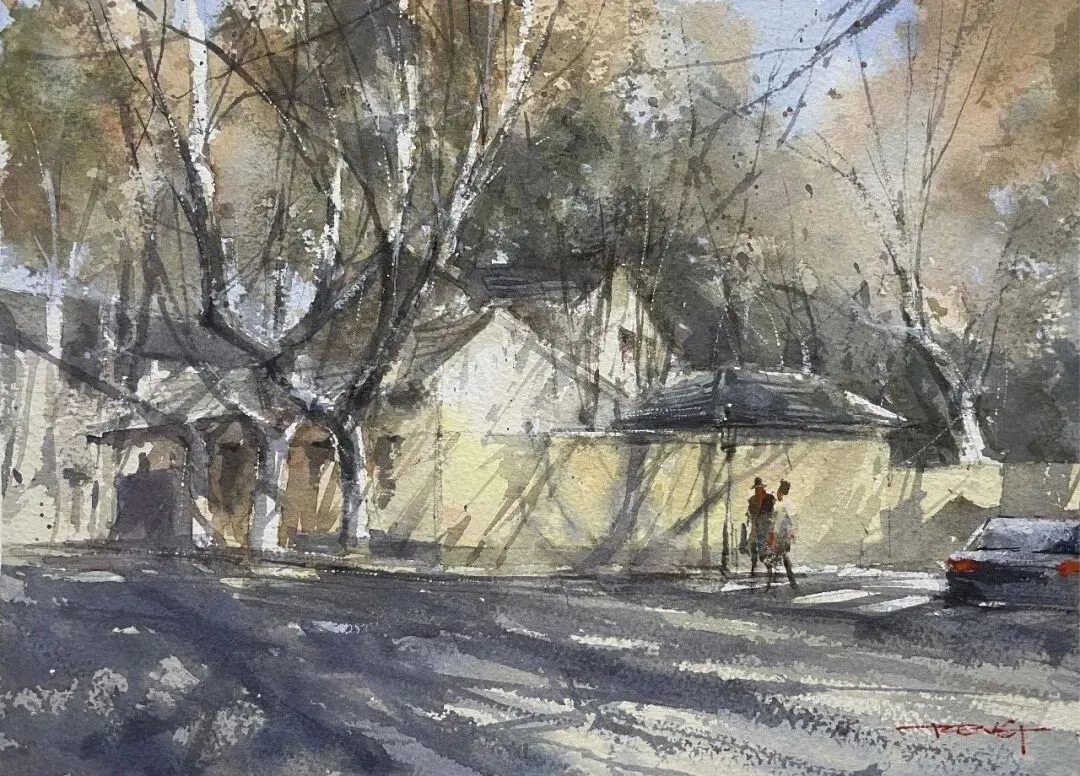 《秋日的西康路》纸本水彩 29X21cm 2025