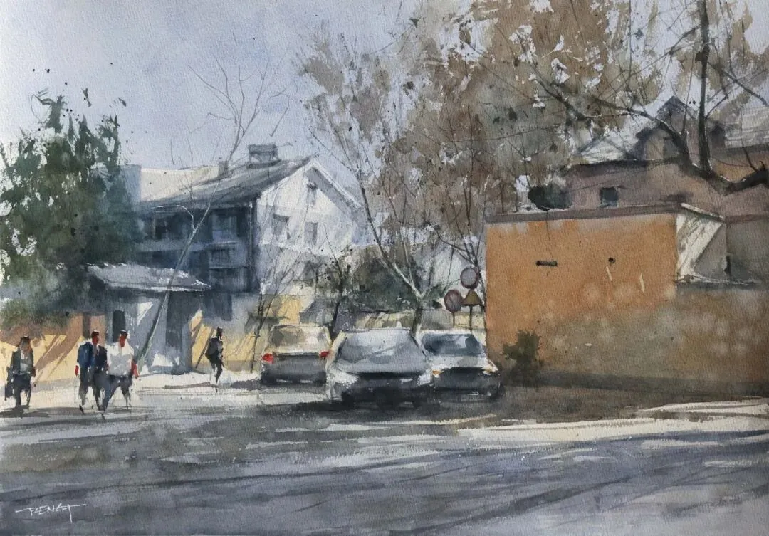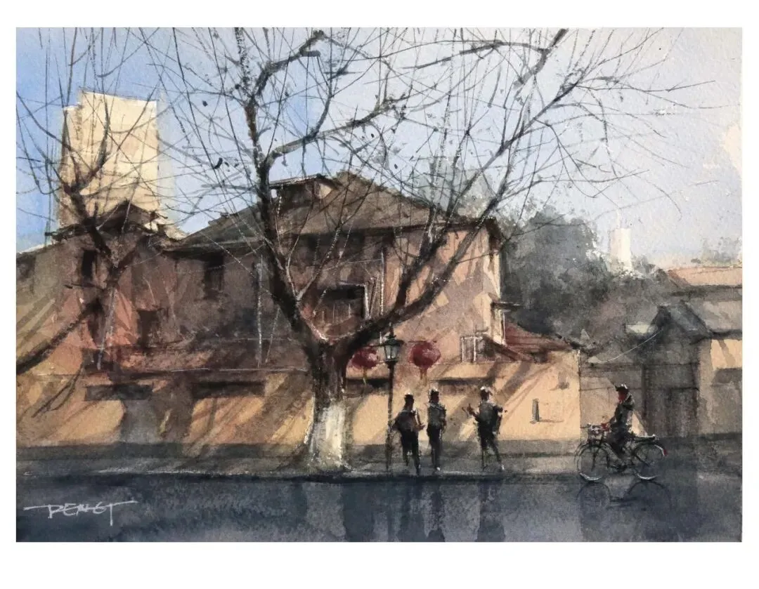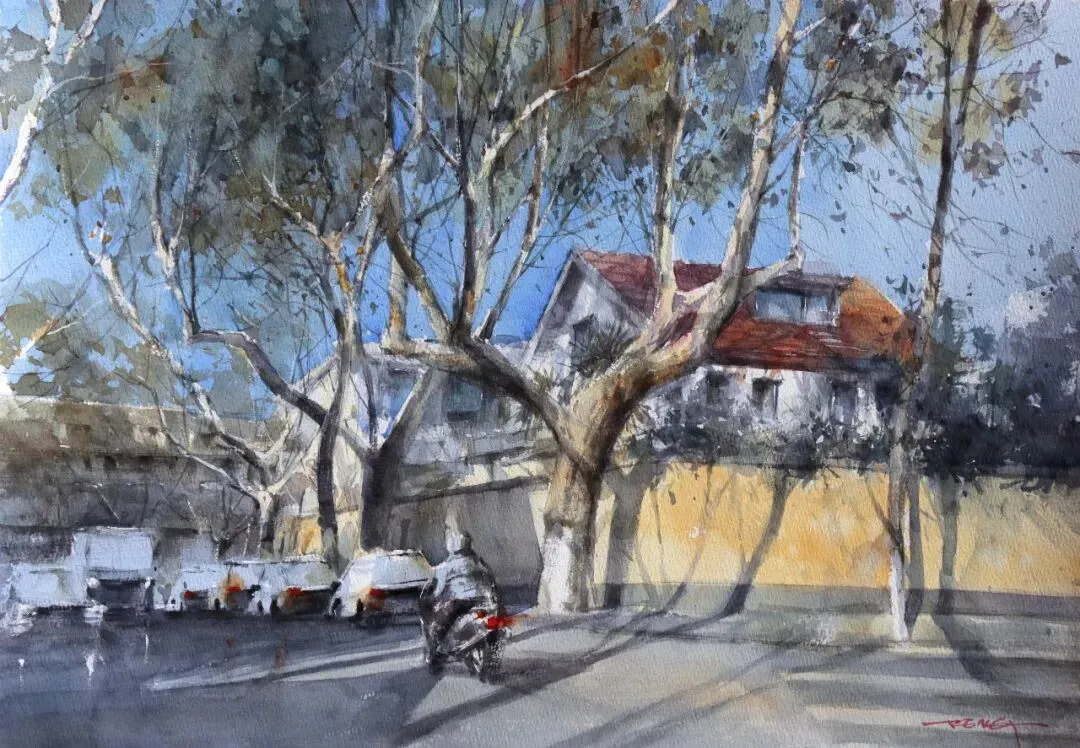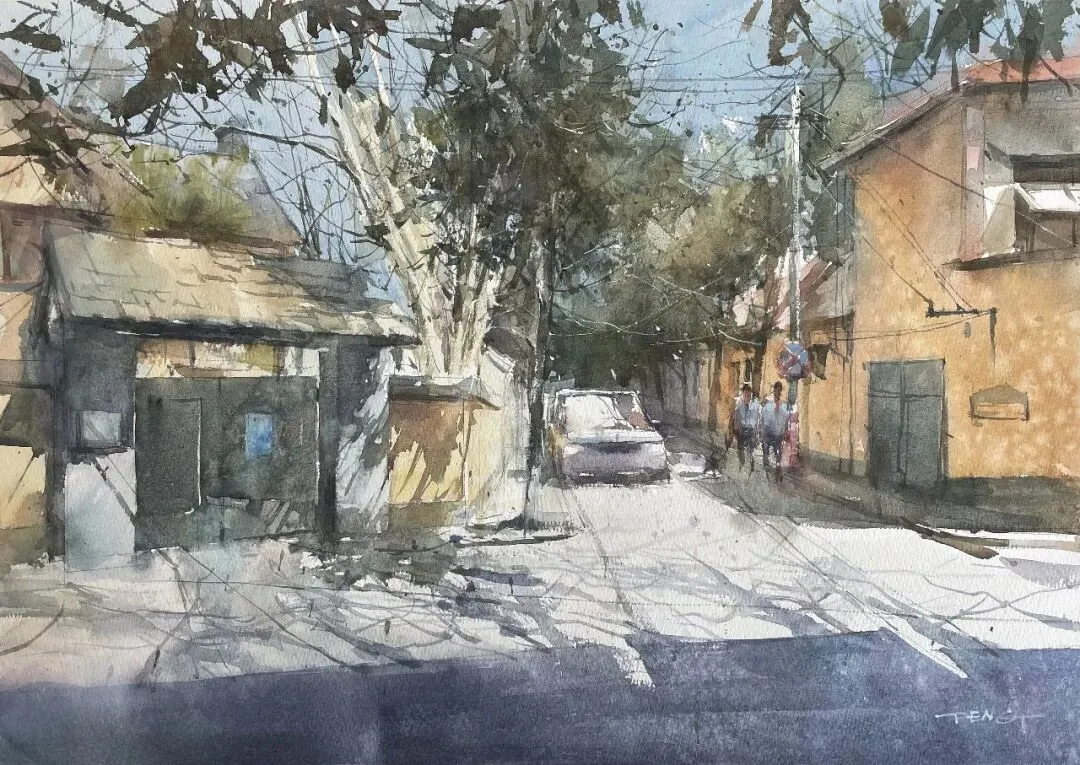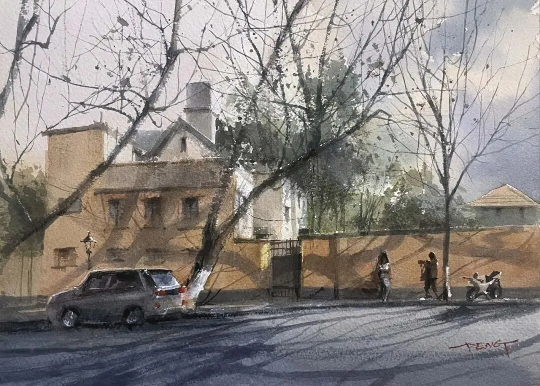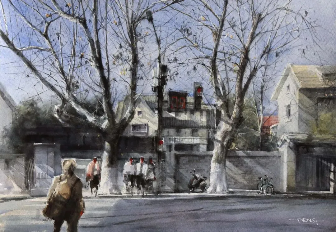 《秋日的西康路》纸本水彩 29X21cm 2025