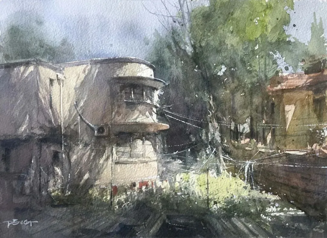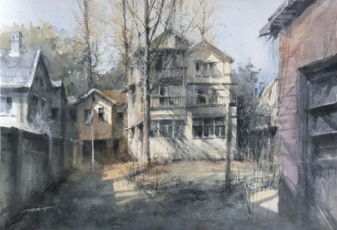 《颐和路上荒废的民国建筑》纸本水彩 51X36cm 2025