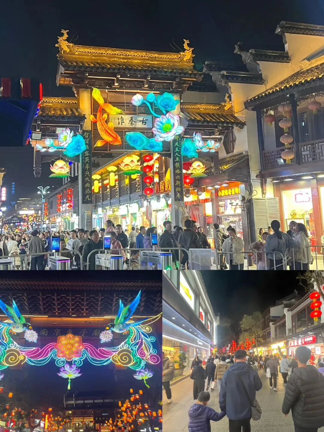 秦淮河订的晚上十点的票,先回酒店小睡了一会儿。五点多出发,步行往秦淮河方向,夫子庙旁边的大街小巷,灯光璀璨,人山人海。