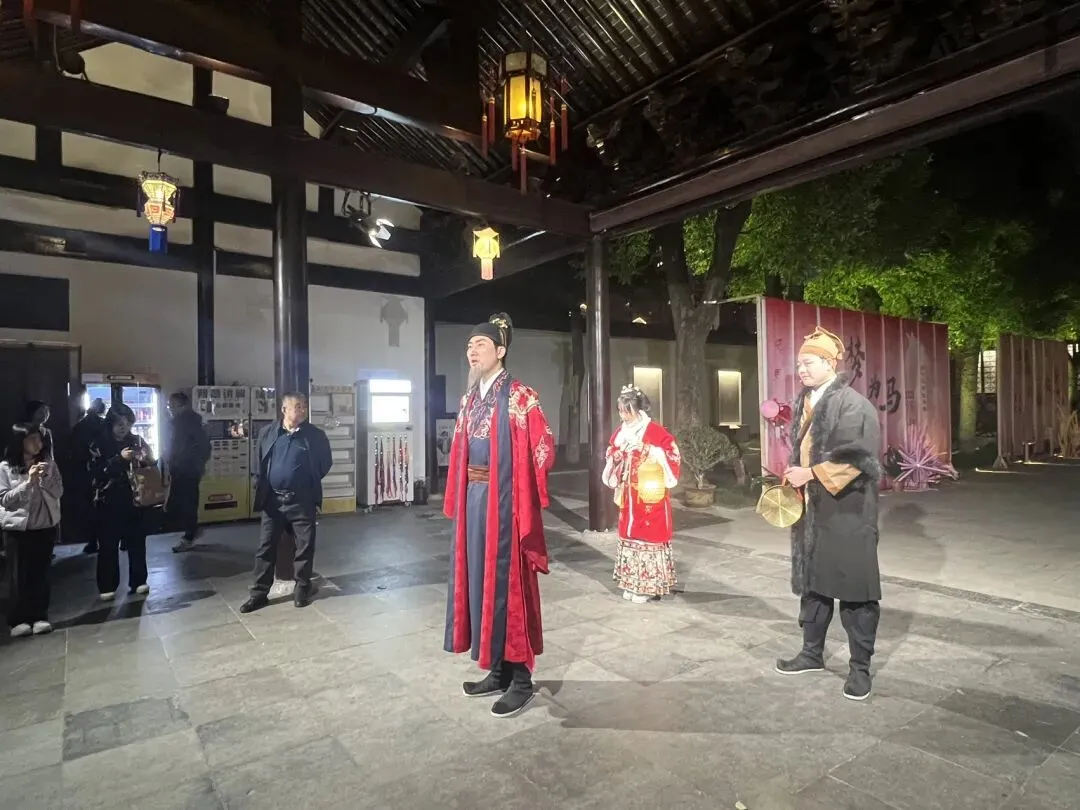 一群人跟着,丫鬟边走边介绍园子的情况,还说家里有一位才貌绝佳的小姐,也就是徐达的长女徐妙云。这个妙云可不简单,她可是朱棣一生的白月光。作为将门之女文能著书立说,武能披挂上阵,最后夫妻二人携手共创盛世。朱棣的子女几乎皆由她所生,她生前朱棣未立一妃,同时为她开创了明清两代册立皇后时单独昭告天下的先河,她就是明成祖仁孝皇后徐氏。跟着丫鬟一路下来,从前厅到后院,节目也是一个接着一个,中间还有互动的小游戏,例如背诗词兴趣幸运香草和铃铛……感觉这种形式真的别出心裁啊!
