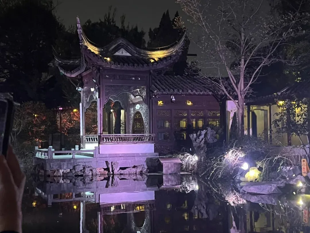 晚上的瞻园格外的清幽别致,有灯光点缀但又不是特别明亮的灯光,和江南的园林很相似,亭台楼阁、水榭回廊、曲径通幽……在你觉得“阿,怎么这么小的地方”时,给你一层又一层的惊喜,又像俄罗斯套娃,让你想知道到底园子后边还有几重?