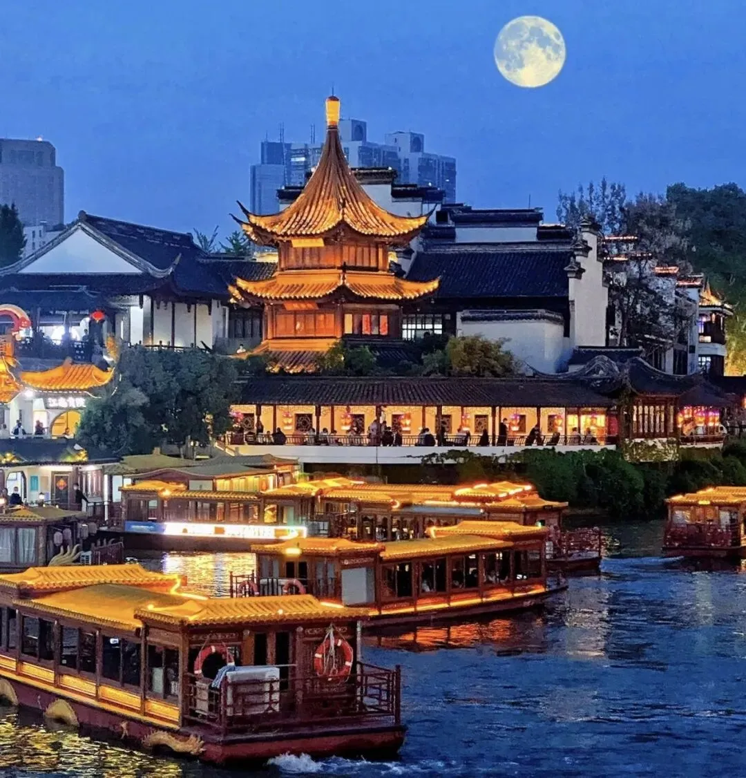 等我们游览完瞻园,一看表九点多了,抓紧往秦淮河的码头跑。结果呢,不得不吐槽一下南京文旅,安排的乱七八糟,本来进出口都把人绕的七荤八素了。好不容易到指定通道了,又不让进,非让我们从另一个口进,跑到另一个口也不让进。两方没协商好,都不让进了。直到有游客急眼了,最后又让我们撤回去,从开始的口进去扫码排队。