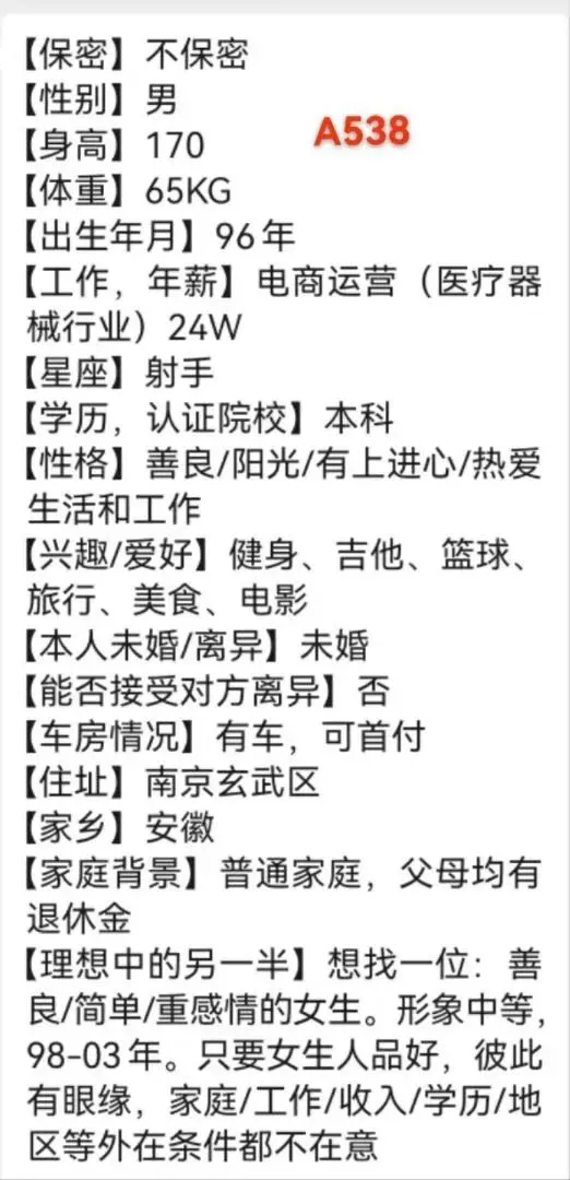 这是一个浮躁的时代,也是一个认识人成本极低的时代,无效的人和事占据太多的时间,骗子、约炮、理财销售等等让我们产生焦虑、内耗,为了帮助大家节约时间,相亲宝公众号发帖人不公布联系方式,我们红娘负责过滤一些不靠谱的人,专门进行验证,核实。提示大家:相亲急切的心情可以理解,但相亲过程中不要有任何金钱往来,切记切记。精准一对一推荐介绍,唯一线下门店地址:秦淮区大行宫长安国际2307。