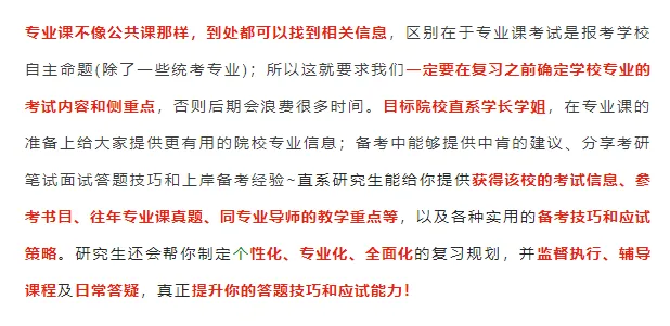 道理我都懂,但是要找到一位与你同学院同专业知识牢固耐心温柔细致亲切业务能力强并且愿意帮助我们的成功上岸的前辈!无异于大海捞针!考研百事通最新推出27考研初试服务!直接帮你匹配直系研究生!助你通关! 支付报名定金(同时签订协议)——签完协议,支付尾款— —填写对研究生的期望(目标院校、专业、喜欢耐心的/严厉的学长/学姐)——按照你的需求匹配适合的研究生——研究生根据你的学习状况制定专属复习规划,提供研究生的录取证明+成绩——赠送公共课助力礼包——上课(课程都是实时互动的,根据学生反馈随时调整)