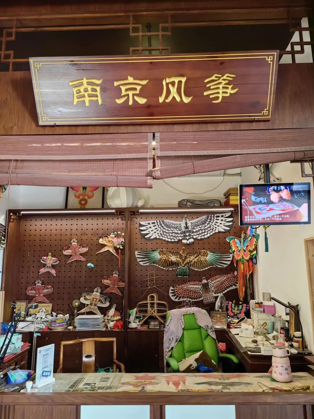 一旁的南京刺绣,丝线在绷架上穿梭,将秦淮河的秋光、紫金山的绿意绣成画,针脚细密处,是江南女子的温婉与细腻;南京泥人用彩泥捏出憨态可掬的娃娃与灵动的走兽,色彩明快,带着老南京的市井热闹;就连南京空竹,也在木与绳的碰撞间,抖出阵阵嗡鸣,仿佛能听见老城南巷陌里的欢声笑语。抬头望见的风筝,色彩斑斓的沙燕与凤凰,是春日里放飞的希望,也是“忙趁东风放纸鸢”的诗意延续。