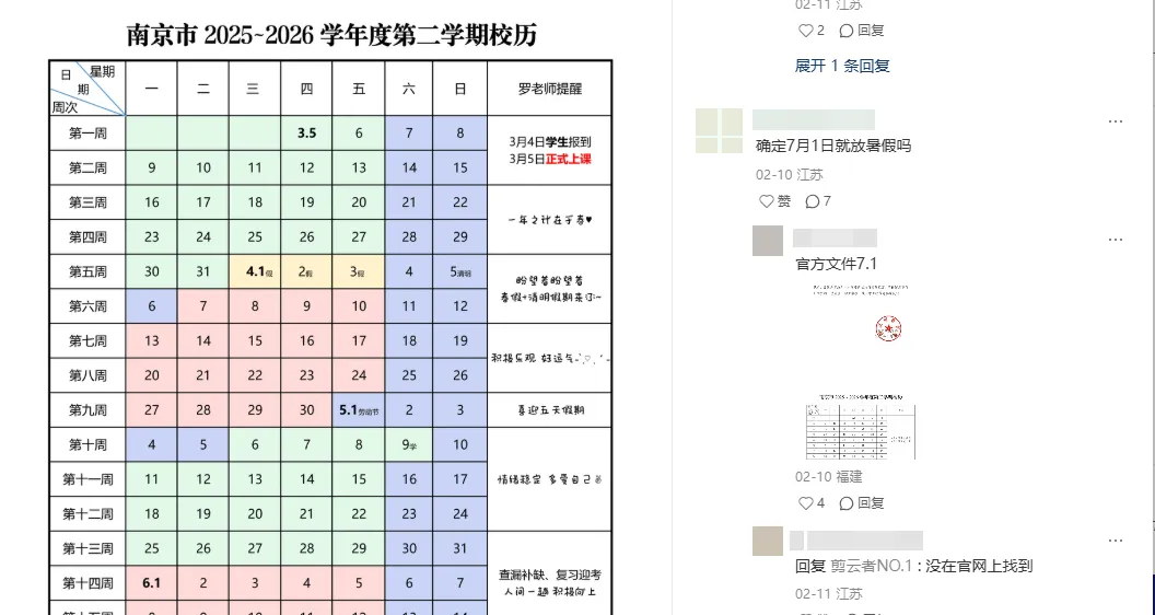开学时间:2026年3月5日 周四 按作息时间表正常上学