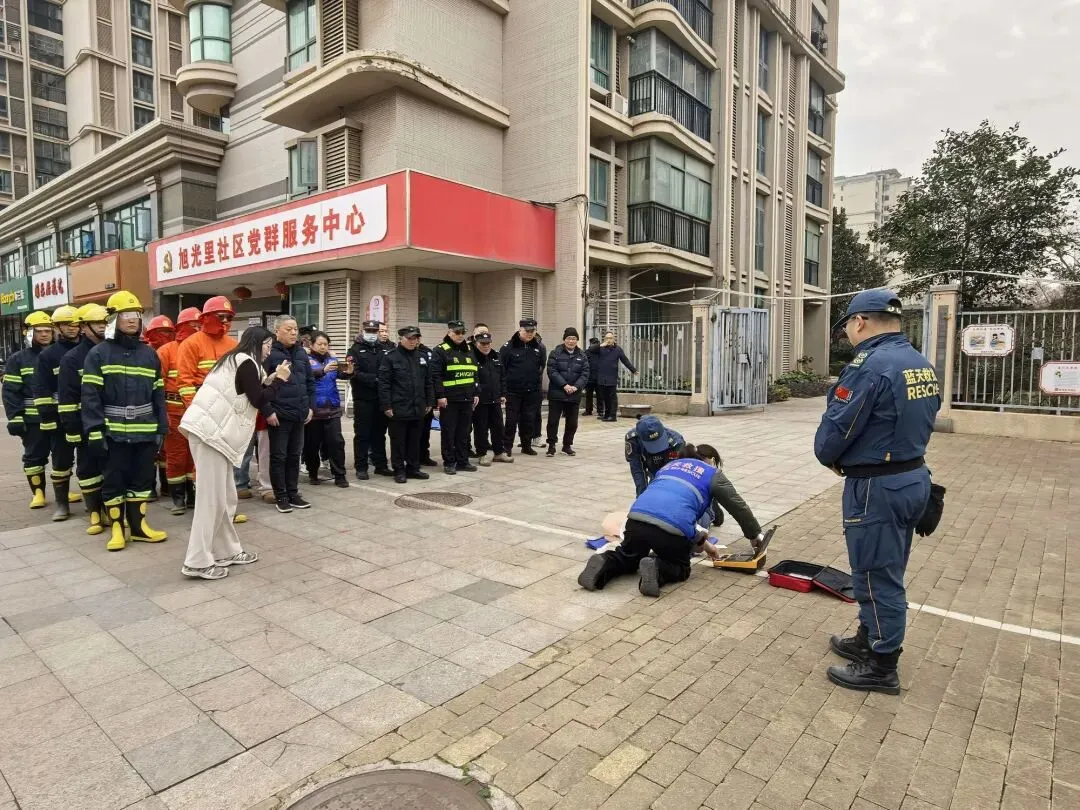 2026年2月5日应邀参加旭光里社区消防演练,12:51南京蓝天救援队1车5人从队部及住地出发,14:02在旭光里社区为社区居民及工作人员,协助进行消防演练(参与人数45人),2026年2月5日15:43培训结束,16:21队员安全返回。(附图2张)