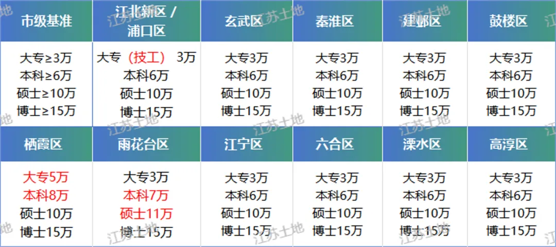 各区高层次人才补贴