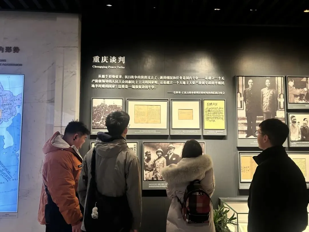 这次参观,我更长久地驻足在展板前。从代表团抵达到撤离,那些泛黄的报纸、油墨未干的文章,无声却有力地传递着中国共产党谋求和平的真诚信号。我才明白,谈判桌上字斟句酌,是一种较量;而将和平之声传向外界,更是另一种至关重要的“战场”。电报字句里凝结着智慧,每一次对外发声都饱含斟酌。每一位代表团成员,都在自己的岗位上默默燃烧着。他们让世界看见和平的诚意,也让后方听见前方的声音。