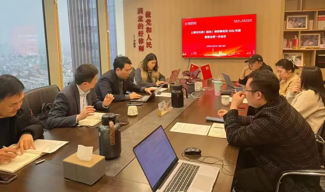 3月2日,上海市光明(南京)律师事务所2026年度第一次管委会会议顺利召开。上海市光明(南京)律师事务所管委会主任张毅,副主任王卫国、薛斯瑞,管委会委员李瑾、丁建雄、包雅杰,执委会李翰轶、孙倩、张露、凌轩然、刘金晓等全员参会。