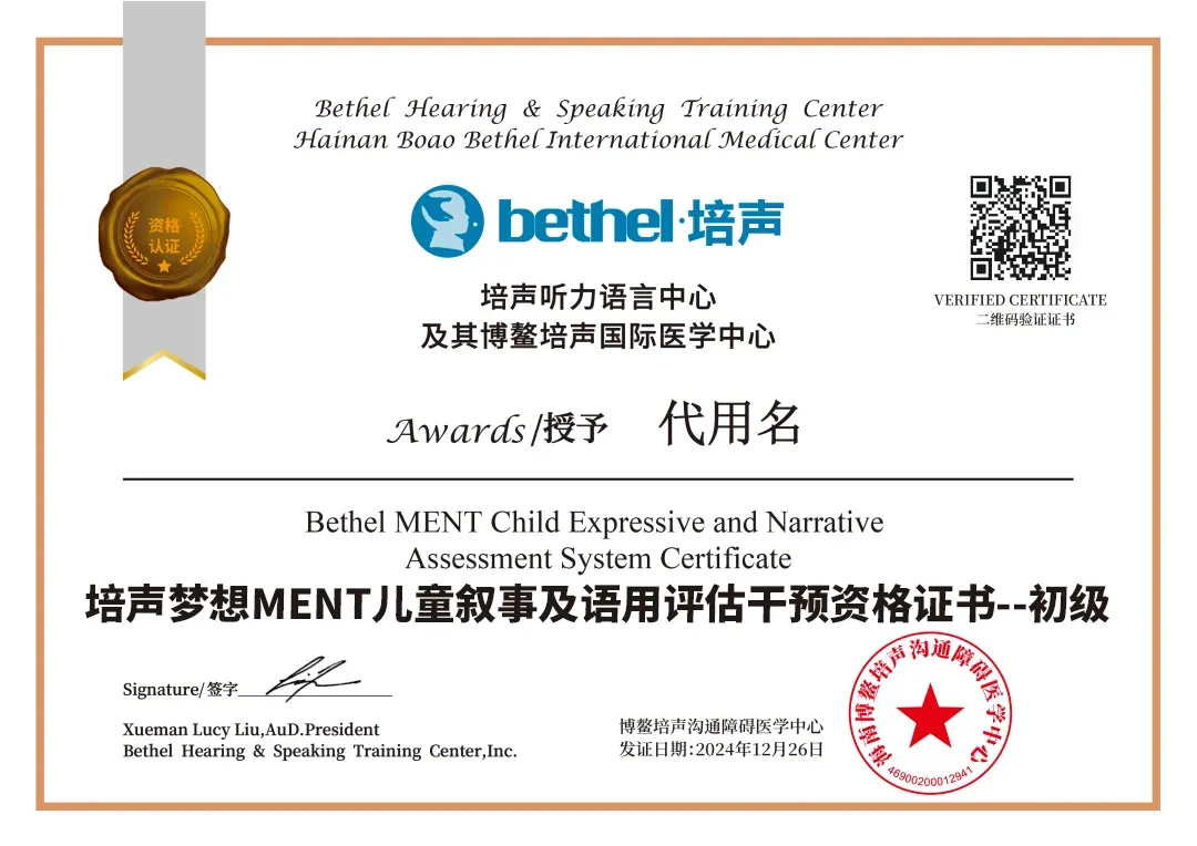 南京市妇幼保健院将携手博鳌培声国际医学中心于2026年4月17-18日共同举办“叙事语用和心智解读评估及干预在神经发育障碍中的理论与实践培训班”,暨培声梦想®MENT儿童叙事语用及心智解读评估干预资格培训,课程设计基于儿童语言及叙事干预的循证临床理念和实践,能够帮助临床专业人士在儿童语言障碍及学习障碍门诊中,对儿童语义、句法、社交语用及心智解读能能力进行详细评估和有针对性的干预训练。
