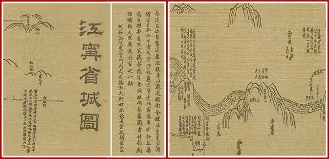 ▲袁青绶《江宁省城图》题序(左)及玄武湖(右)