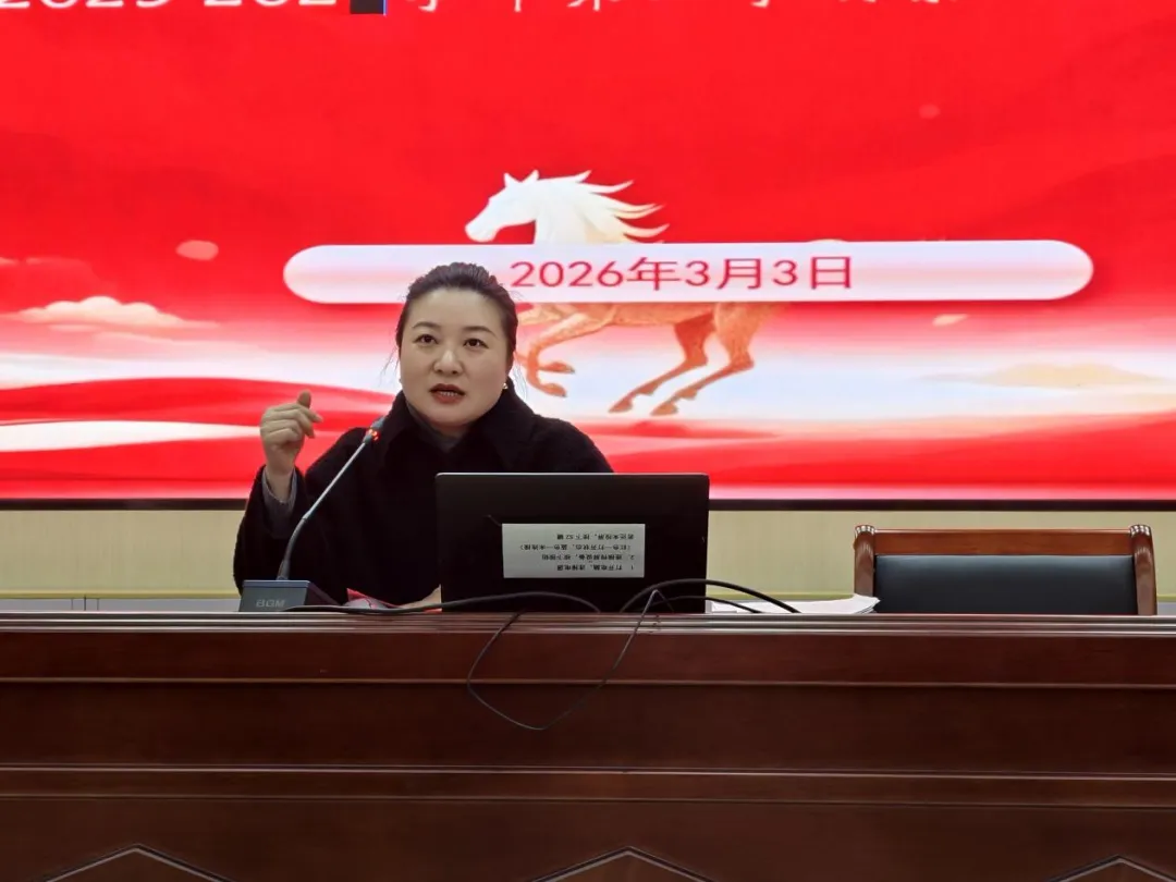 春启新程,慧润杏坛。为全面落实立德树人根本任务,锚定新学期发展目标,凝聚全体教师奋进力量,3月3日,南京市金陵小学召开2025-2026学年第二学期集团全体教师大会。本次大会以“策马扬鞭开新局 凝心笃行育新人”为主题,由王新副校长主持。全体教师齐聚一堂,以昂扬之姿、奋进之心,开启新学期育人新征程。