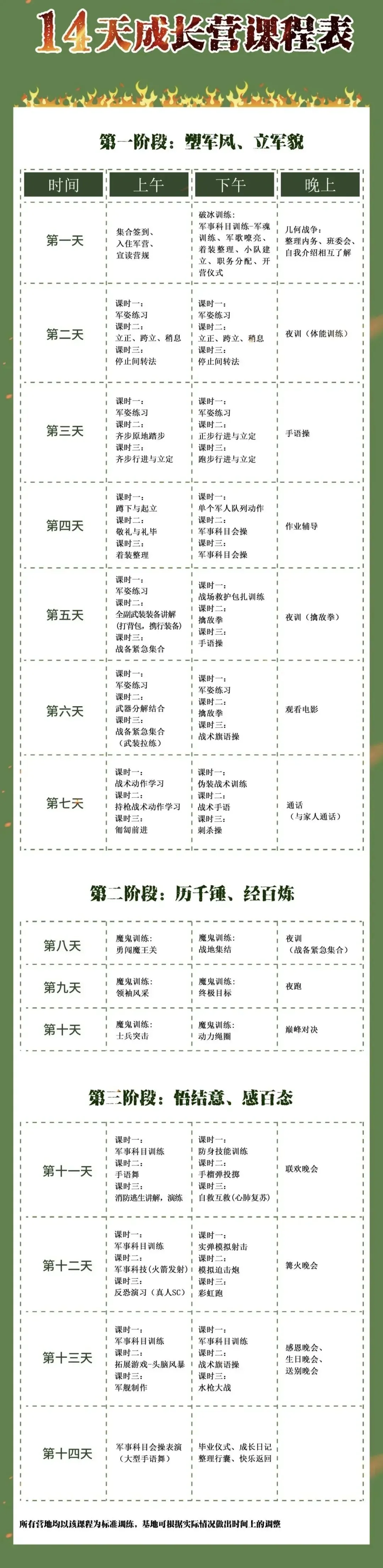 4、如学员身心有特殊情况,须在开营当天详细告知教官或生活老师。