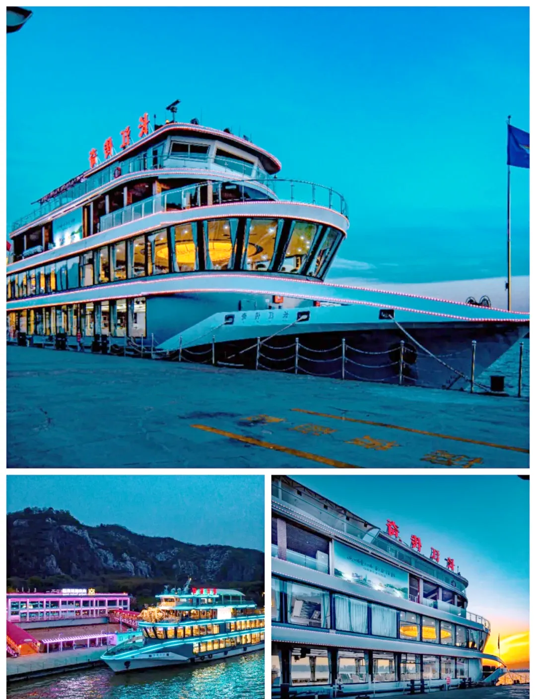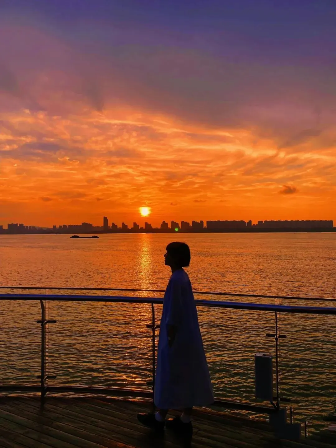 更可以在这里邂逅一场浪漫江边日落,江风拂面,静静地注视着太阳落下,橘子色渲染整个天空,江面闪烁着熠熠波光,那一刻简直美到失语。趴在栏杆上,就像杜拉斯笔下的少女,望着对岸,也望着自己。☑️想看落日的话,一定要提前看好天气,然后坐19点的时间段,18:30就可以登船啦。登船前可以在邮轮外面拍邮轮合影,还有江面美景。☑️看落日拍照打卡去3层甲板效果zui好。