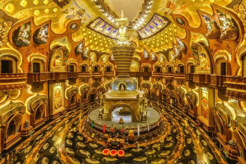 大报恩寺汇集了佛顶真骨、感应舍利、玄奘顶骨舍利和诸圣舍利四份佛门至宝。本厅设有八万四千盏灯,寓意“八万四千法门”,根据佛经记载,阿育王统一印度后将佛舍利分为八万四千份,建八万四千塔。