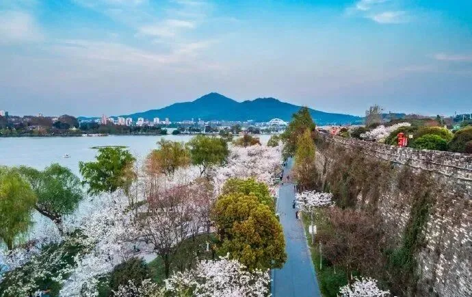 三月的玄武湖洲岛含翠,樱花争艳,鸥鹭争飞。