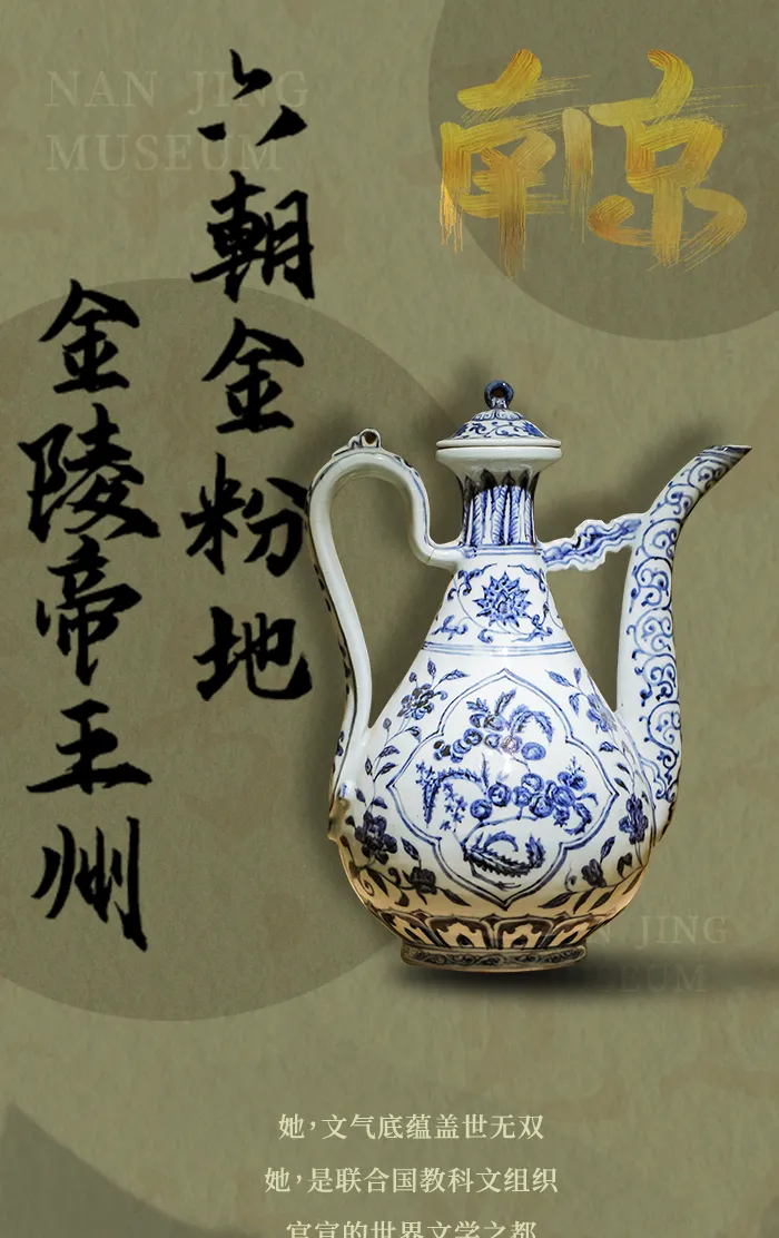 南京市博物馆馆藏文物10万余件,以六朝和明代文物数量最多、质量最精,其中尤以南京人头骨化石、青瓷釉下彩神鸟瑞兽盘口壶、王谢家族墓志、青花萧何月下追韩信图梅瓶、镶金托云龙纹玉带、渔翁戏荷琥珀杯、七宝阿育王塔等一批文物蜚声中外,是各个历史时期的文物精粹的典型代表。在“龙盘虎踞——南京城市史”基本陈列和各个专题陈列中,荟萃了丰富多彩的文物珍品,全面反映了南京历史的发展,展示了馆藏特色,吸引着络绎不绝的中外游客。