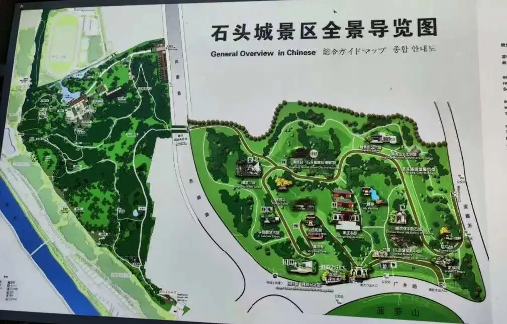 城墙也有垛口,我们看着地图终于明白了虎踞龙盘的含义了。石头城北面是长江,东面是秦淮河,两河在下关汇合,石头城就在两河的东面叫清凉台的山丘上,像老虎蹲踞在这里,石头城的东面是钟山像龙盘俯首守护着石头城。不过随着城市向南向北扩大,石头城已经蜷缩在南京城北面的玄武区。古代城市背山面水绝对是好地方。
