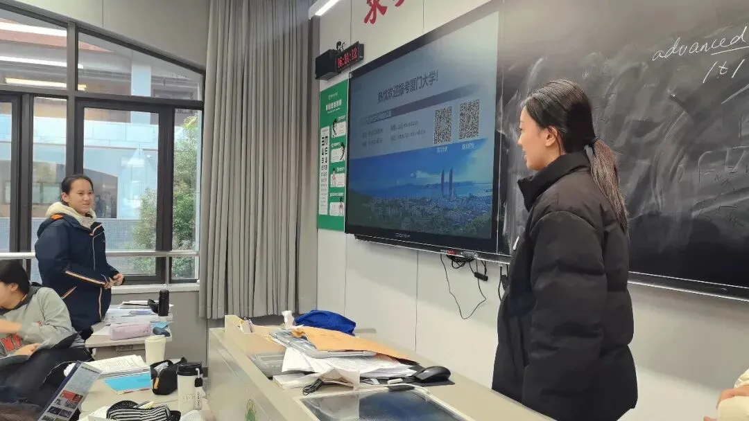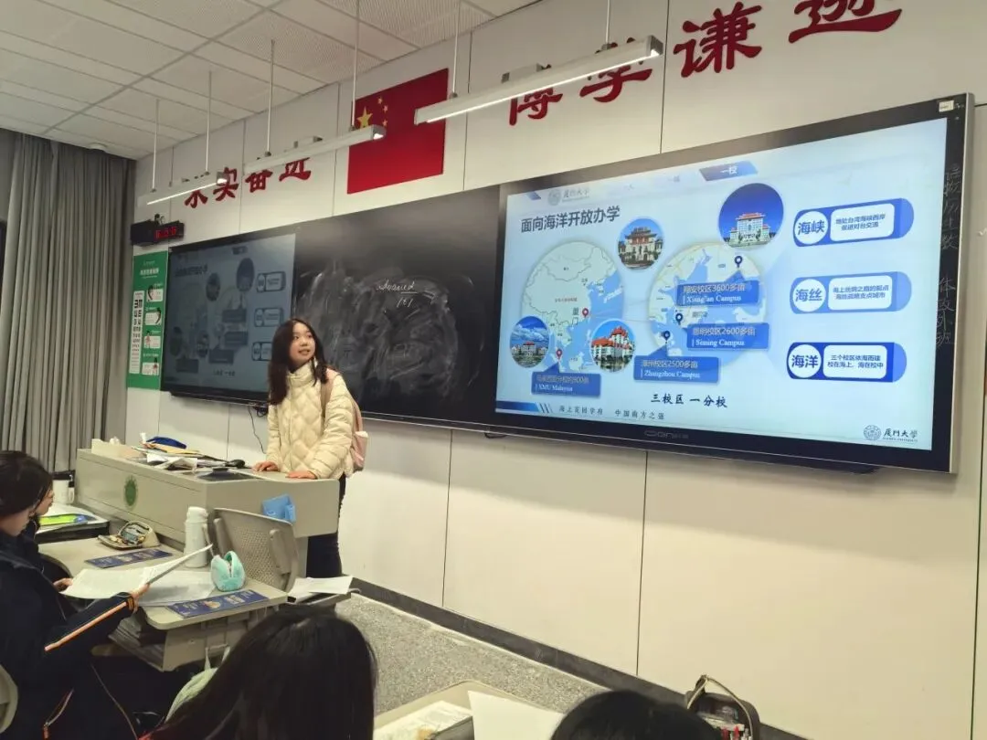 吕其右同学分享了她的厦园生活体验,展示了厦大优美的风景与丰富多彩的活动,令同学们心驰神往。
